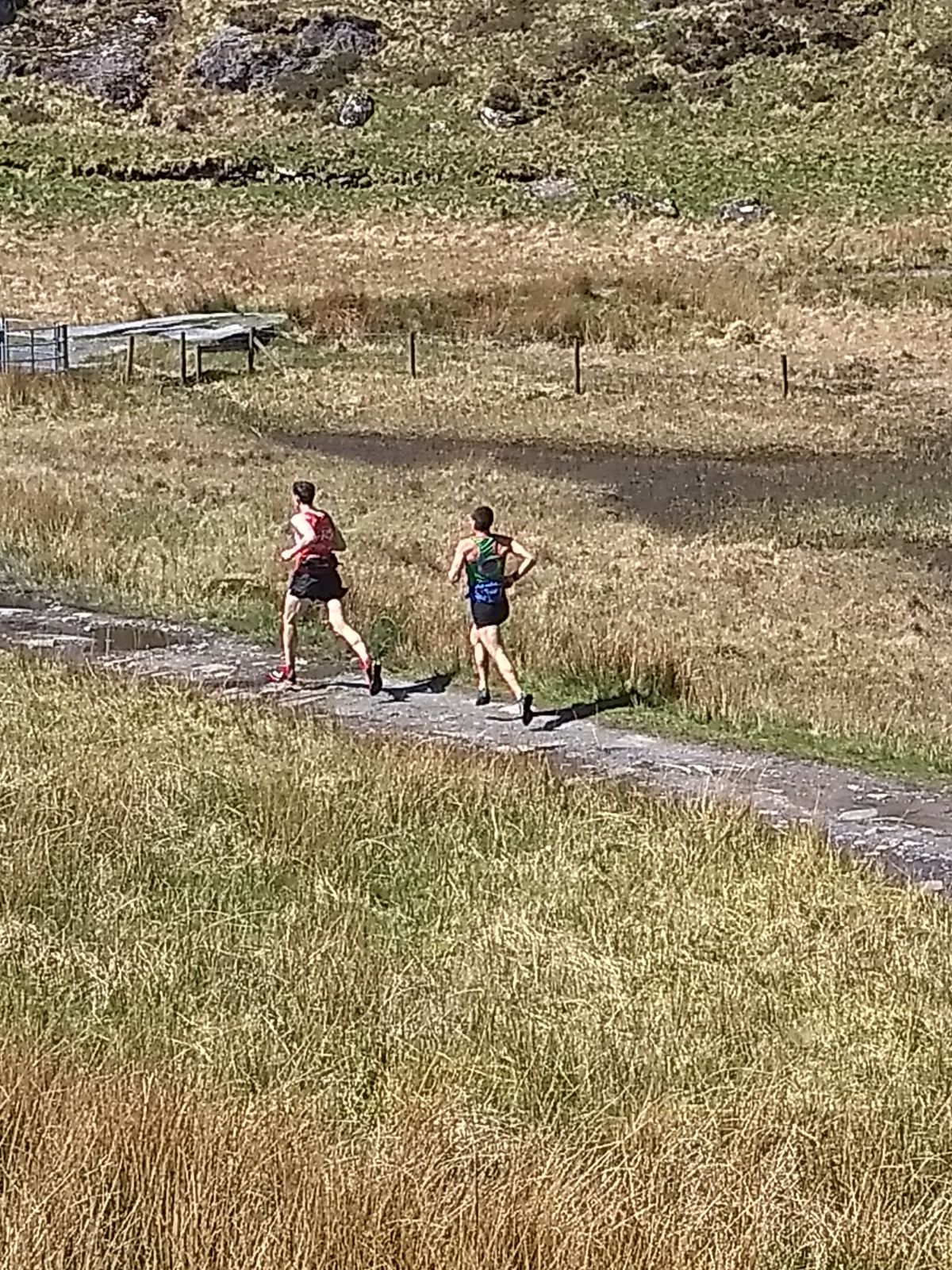 Gareth Wyn Hughes read something on social media from me saying I was doing it, so he has turned up too. We are running pretty close for the first 3 miles of 10 mile course. I get my leg stuck in a bog, he gets a gap, I can’t close it again, and he summits the first of 3 hills about a minute ahead. I twist my ankle a little bit on the descent and slow down to let it recover. Suddenly, Gareth is out of sight and I am in 4th place, with another guy just behind.